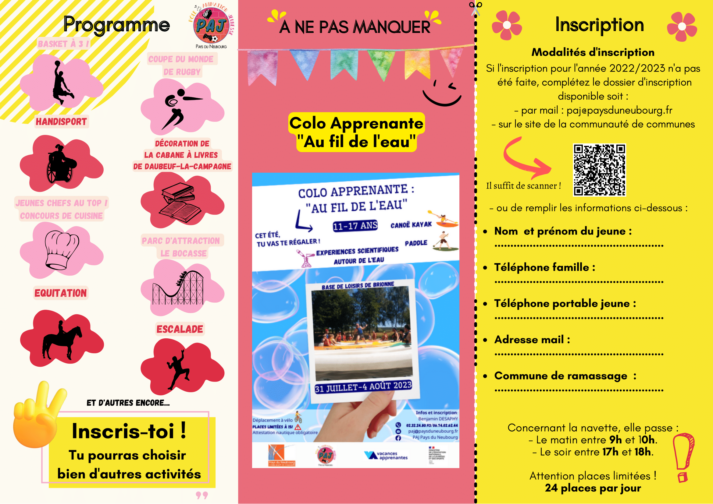 Veuillez contacter le Pôle Animation Jeunesse (PAJ): M. Benjamin DESAPHY 02 32 24 80 93 – 06 74 02 62 44 benjamin.desaphy@paysduneubourg.fr