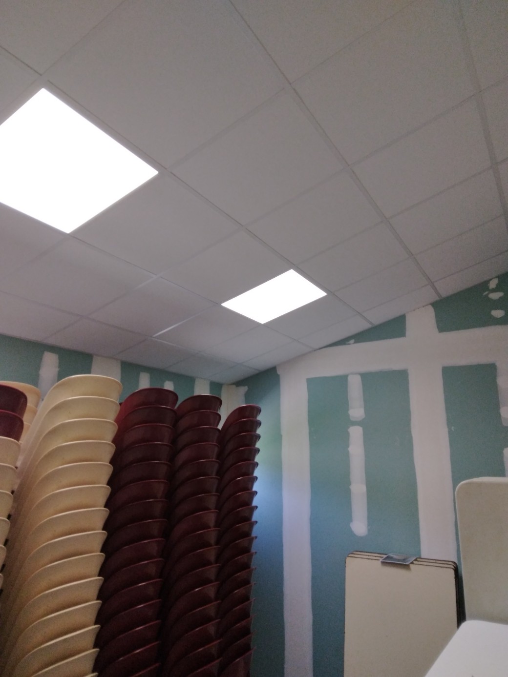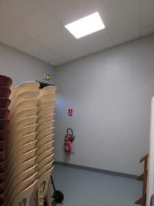 Des travaux d’isolation des murs et des plafonds ont été réalisés au niveau de la scène et des pièces latérales pour améliorer la performance énergétique de notre salle des fêtes. En effet, depuis l’origine, ces pièces disposaient d’une isolation plafond de faible qualité et d’aucune isolation sur les murs. L’éclairage a dans le même temps été rénové avec des leds basse consommation.