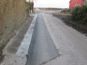 Un avaloir s’est avéré sous-dimensionné à l’usage pouvant inonder les terrains voisins. Pour éviter cela, des travaux ont été réalisés constituant à diriger le trop-plein de cet ouvrage vers le fossé existant de l’autre côté de la voie.