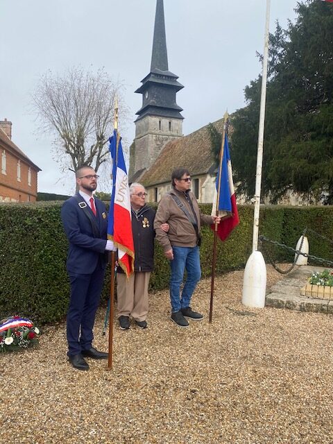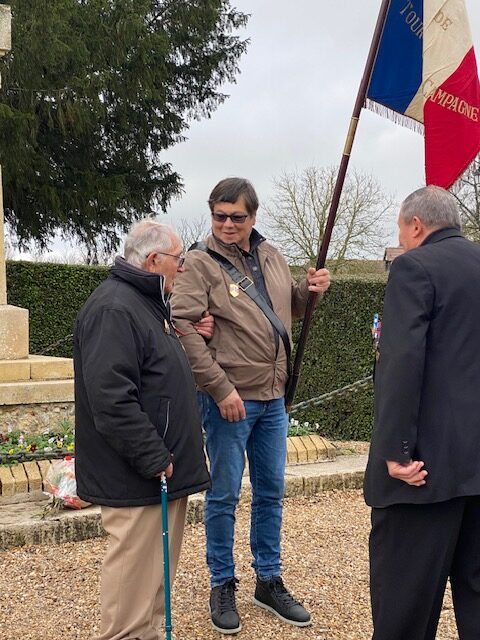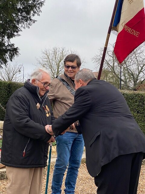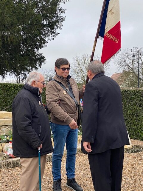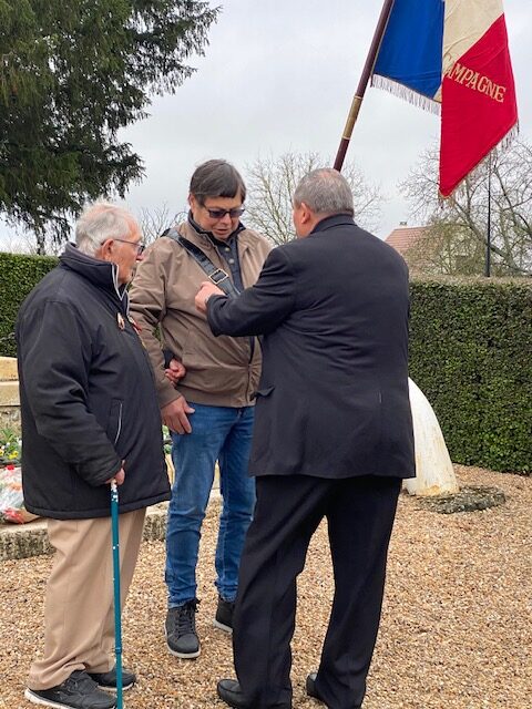 Les insignes de porte-drapeaux ont été remises à Cyriaque HEBERT et René HEBERT. Tradition de porte-drapeaux de père en fils : Dimitri HEBERT, petit-fils de Cyriaque s’est joint à eux.