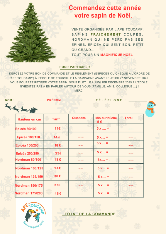 COMMANDEZ VOTRE SAPIN DE NOËL AVEC L’APE TOUCAMP