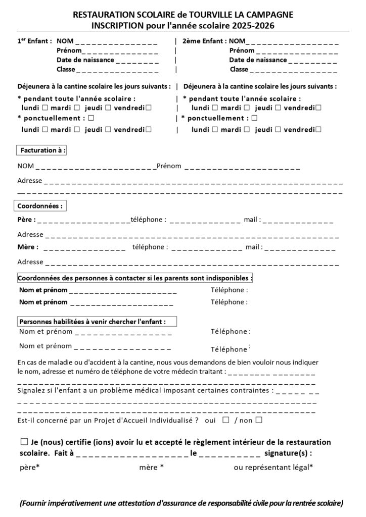 Pour télécharger la fiche d’inscription cantine,