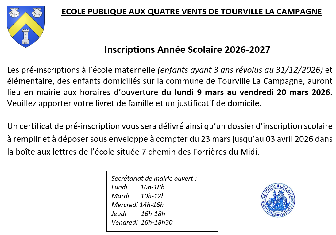 Toute nouvelle inscription s’effectue en mairie. Il sera délivré sur présentation du livret de famille et d’un justificatif de domicile, un certificat d’inscription qui devra être remis au directeur de l’école lors de l’admission.