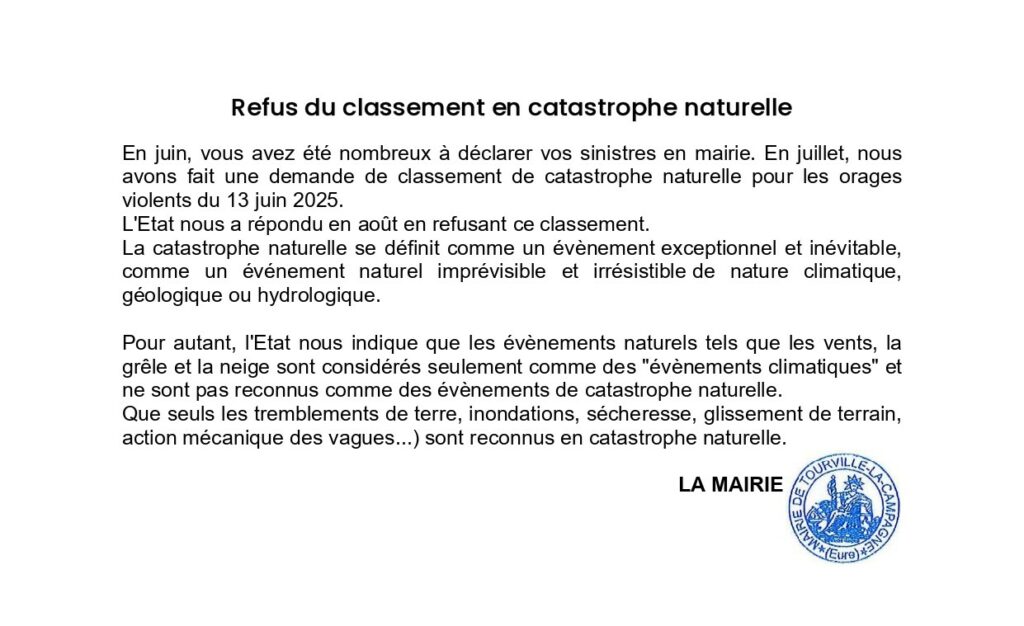 REFUS de RECONNAISSANCE de CATASTROPHE NATURELLE par l’ETAT